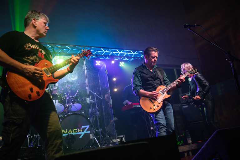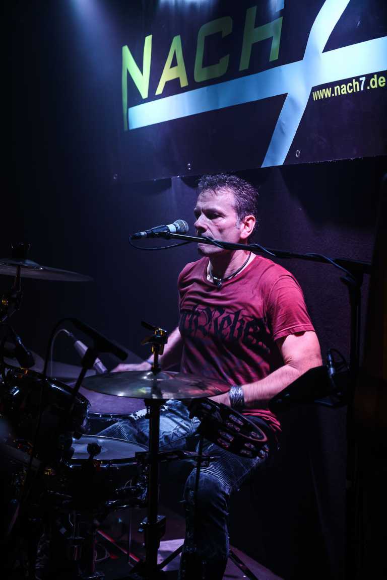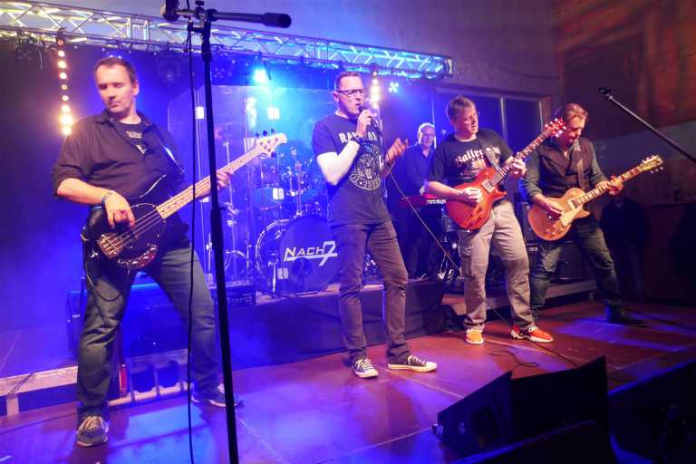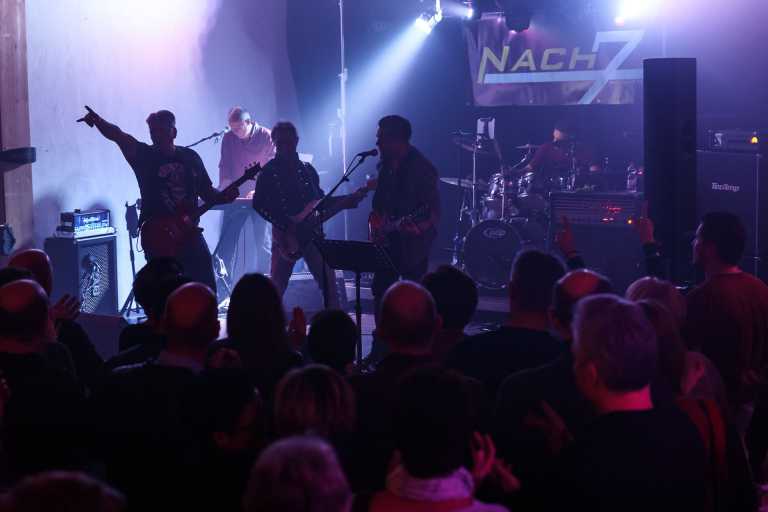 Zusammen mit drei anderen Bands sollte es dann am 2.November 2013 in der Partyscheune „Zum Dahlacker“ zur Sache gehen. Doch zehn Tage vor dem Auftritt sah es danach aus, als würde unser Plan wie eine Seifenblase zerplatzen: Wir standen plötzlich ohne Sänger da. Glücklicherweise haben sich kurzfristig eine Sängerin und ein Sänger gefunden. Sie waren bereit einzuspringen, so dass wir in der Lage waren, mit einem verkürzten Programm auf die Bühne zu gehen. Trotz aller Widrigkeiten war der Zuspruch des Publikums groß und für uns stand fest: Das war der Startschuss für „Nach7“.